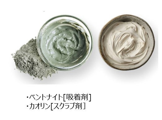 ※1ベントナイト(吸着剤) 、カオリン(スクラブ剤)※2 シリカ(整肌)※3 アスコルビン酸(保湿)※4シリカ(整肌) ※5 角層まで