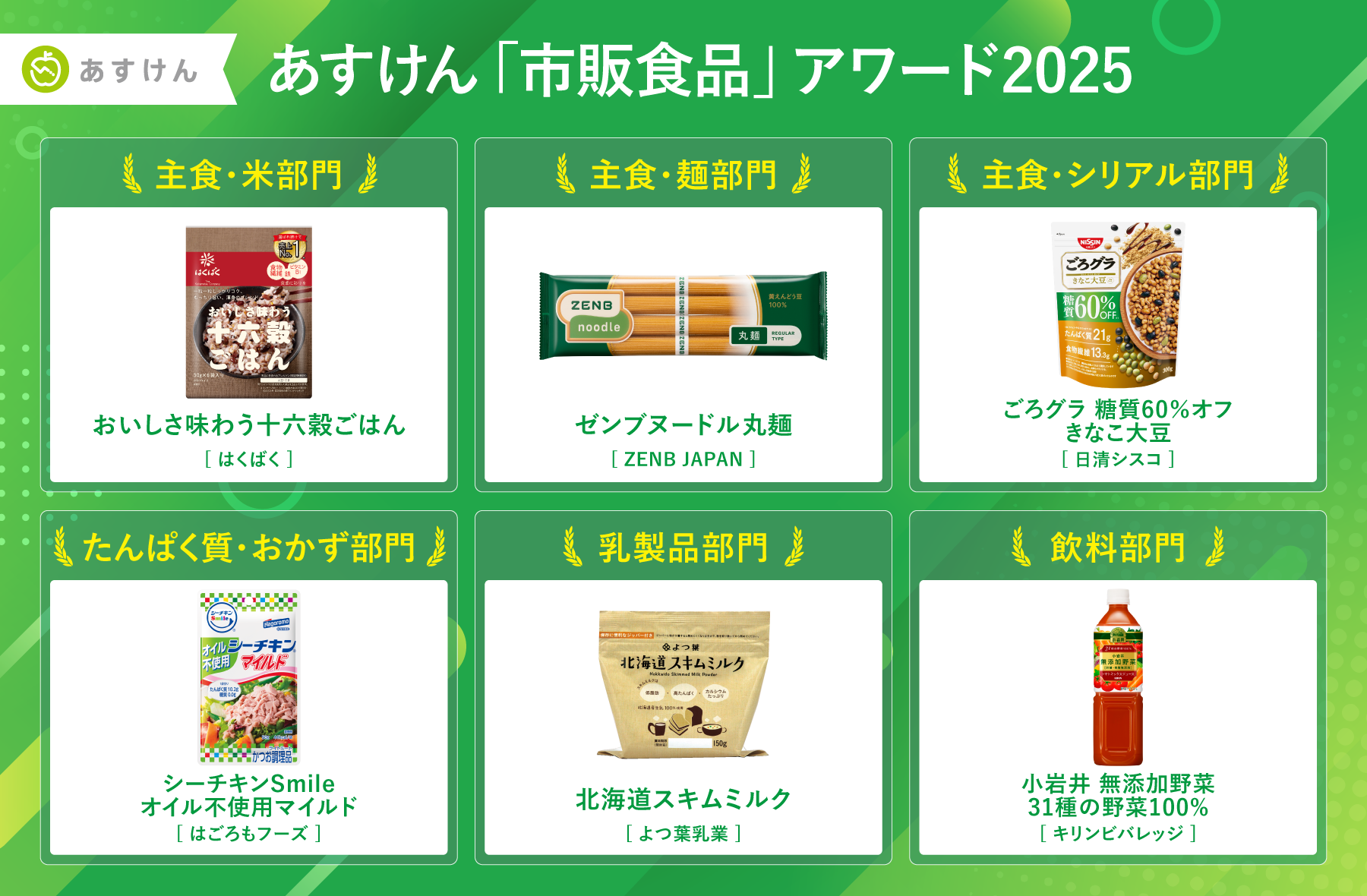 2025年に健康意識の高い人が実際に食べていた人気市販食品は?『あすけん「市販食品」アワード2025 』6部門を発表!