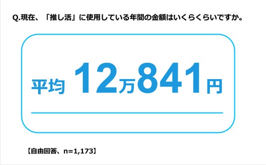 また、現在推し活に使用している年間の金額を聞くと、平均の投資額は「年間12万841円」、男性平均が「年間12万4,938円」、女性平均が「年間11万6,550円」となり、男女問わず、月あたり1万円前後の投資額であることがうかがえます。
