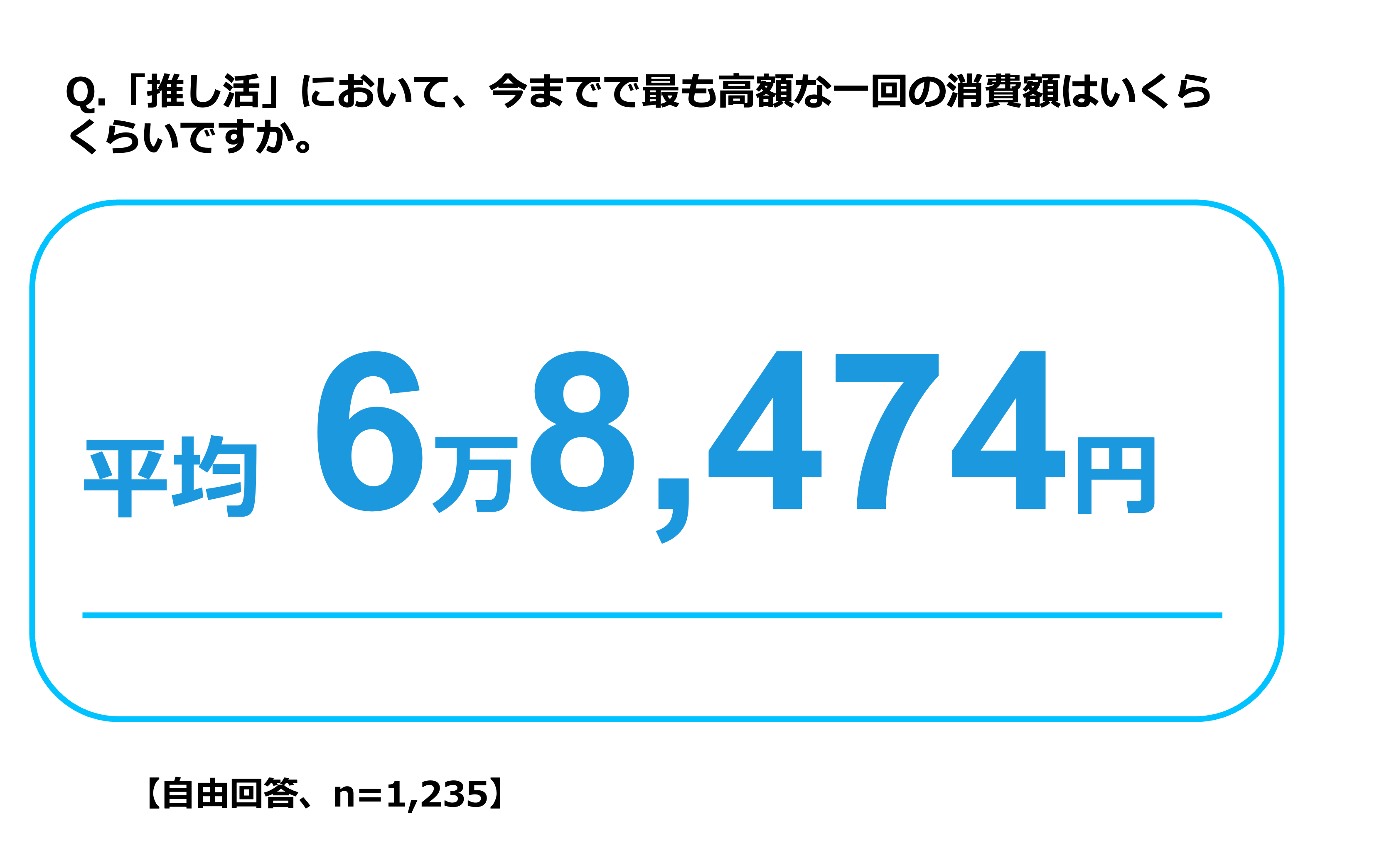 また、推し活における今までで最も高額な一回の消費額を聞くと、平均「6万8,474円」、男性平均が「8万4,646円」、女性平均が「5万1,633円」となりました。最大では「800万円」という回答もあがるなど、近年拡大する「推し活市場」において、その投資内容もさまざまな形があることが見受けられます。