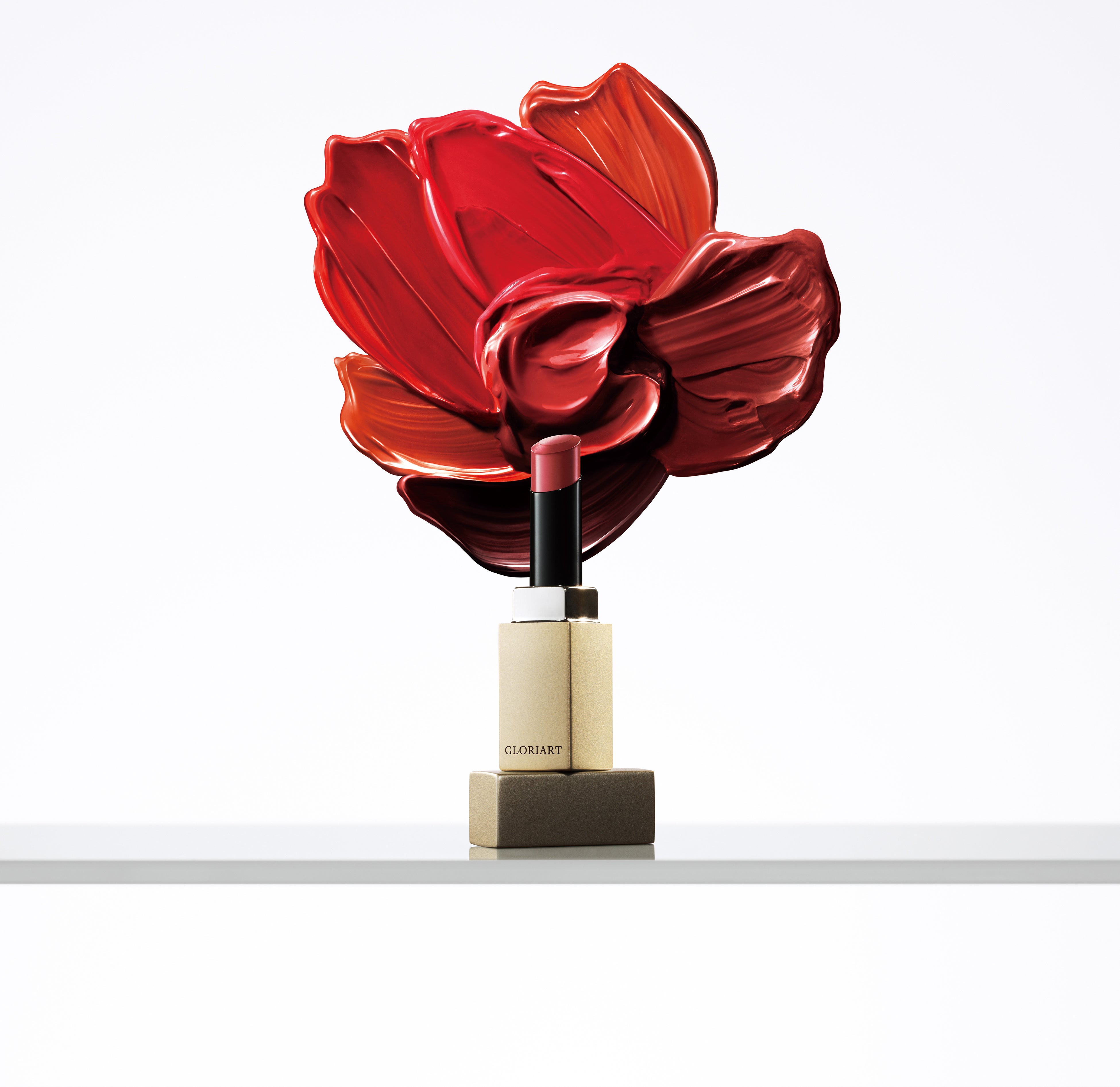 「グロリアート」は、当社の最高級ブランドとして1991年に生まれ、そのネーミングは「GLORIA(輝かしい)」と「ART(芸術)」に由来しています。当時はべースメークブランドとしてデビュー、その後ポイントメークもそろえたブランドに進化しました。その中でずっと変わらないのは、スキンケア効果とつけ心地のよさを大事にしてきたブランドだということです。コロナ禍以降、マスクの着用頻度が増えたことで口紅の色の持続効果は以前にも増して求められるようになり、今では必須機能とも言えます。当社でも口紅の持続効果の研究を重ねてきましたが、今回は色味が持続する「フィットフィルム技術」を採用しただけでなくつやを与えることや、なめらかなつけ心地も実現しています。これまでの色が持続するタイプの口紅で感じた塗膜の薄さや乾燥感を払拭したひっかかりのないつけ心地。つや感が醸す錯視効果でふっくらと若々しい唇を演出します。