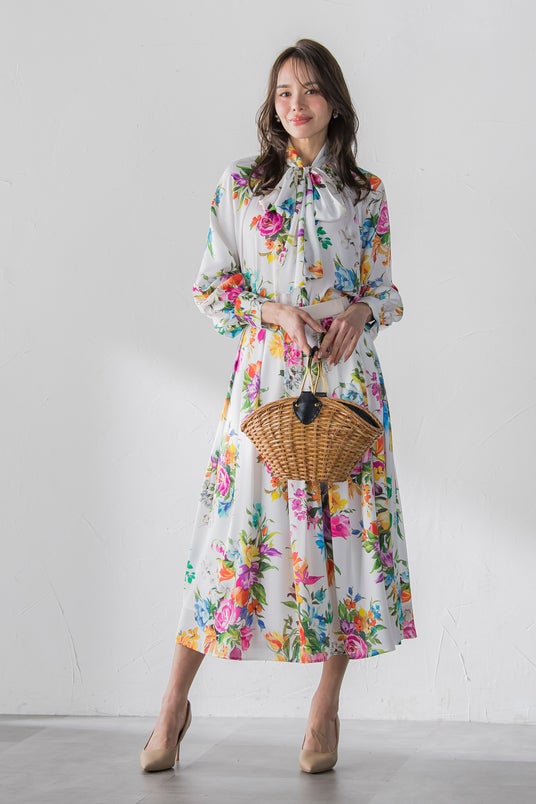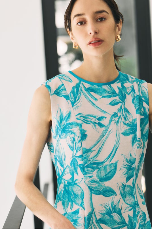 ビアッジョブルーは、 イタリア語で 「青い旅」 という意味を持ち、 1990 年 異国情緒が漂う港町 神戸で 旅をテーマに創立されました。 当初から一貫して海外のラグジュアリーブランドのような 高品質素材やデザインにこだわり、 特に京都のアトリエ画家と手がけるオリジナルのプリント生地は 絵画のように美しく、 毎シーズンご好評いただいております。 ビアッジョブルーの全てのパターンメイキングは熟練された専属のパタンナーが手掛けており ストレスのない着用感でありながら、 美しい姿勢へと導いてくれる 『美シルエット』 を追求しています。