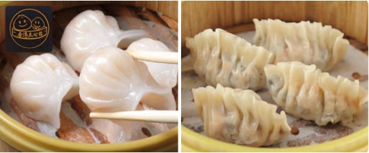 右)高級食材のフカヒレをはじめ、ジューシーな豚肉、きくらげ、にんじん、しいたけなど様ざまな食材を加えた、満足感の高い贅沢な餃子がお目見え。
