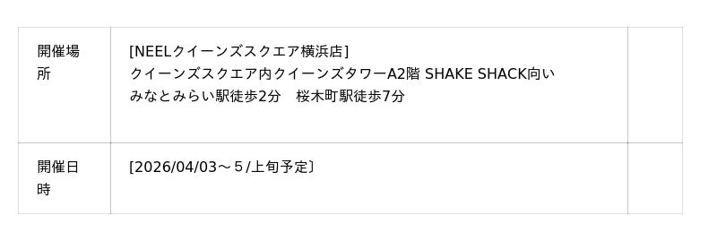 ~NEELクイーンズスクエア横浜店~ 開催期間:2026/04/03~5/上旬