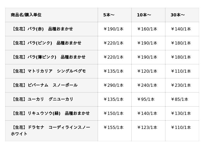 もちろん5本からのご購入でもお得になるため、小規模なお花屋さんやハンドメイド作家さんはもちろん、お母さんへのプレゼントをお考えの個人のお客様にも最適です。