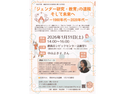 【徳島市】徳島市男女共同参画に関する学習会 「ジェンダー研究・教育」の道程 そして未来へ -1960年代~2020年代-を開催します