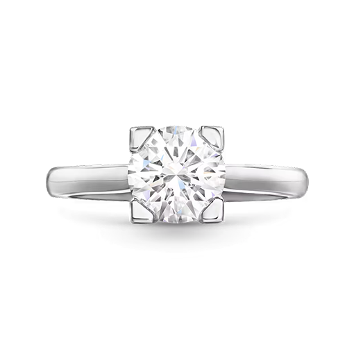 アームに並ぶ24個のダイヤモンドに引き立てられたラウンド・ブリリアントカットのセンターストーンが、至高の輝きを放つフェミニンなリング。生涯の愛を誓う、二人の絆の証し。