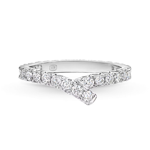 エタニティリングも豊富なハリー・ウィンストン。ハンサム派の花嫁におすすめなのはこんなデザイン。贅沢に並ぶ2列のダイヤモンドがしなやかにクロスする、華やかでスタイリッシュなバンドリングに、確かな愛と絆を感じて。