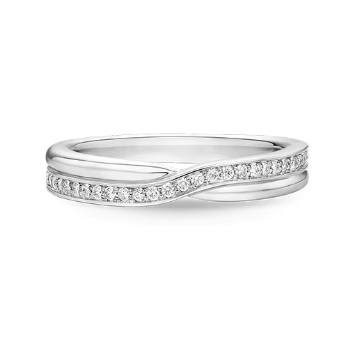 Akane_ハーフエタニティとプラチナがなめらかに交差するスマートなフォルム。