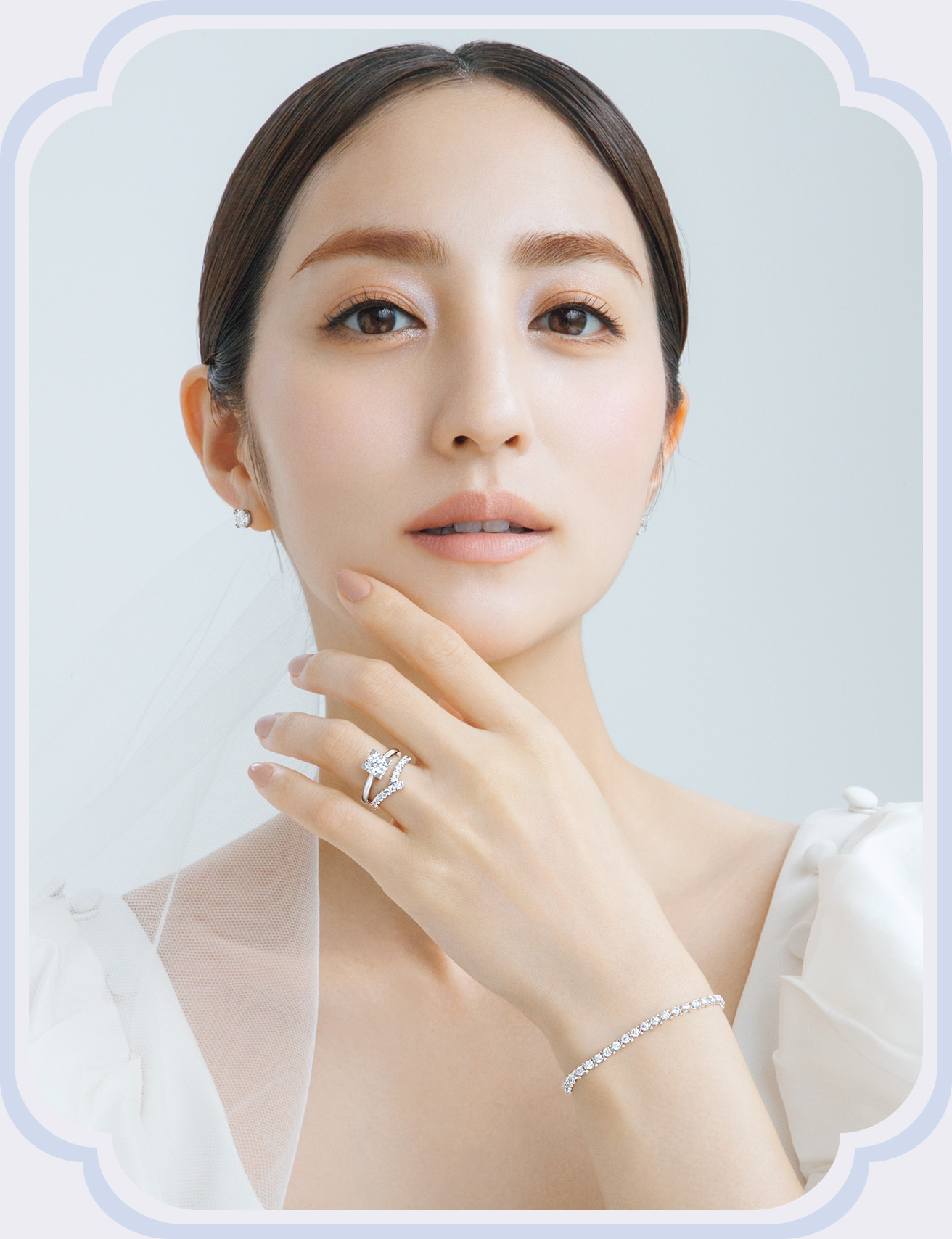 私にとって「ハリー・ウィンストン」は、ダイヤモンドの代名詞的存在。そして、できることなら大切な人から贈られたいジュエラーでした。実は夫にもさりげなくその思いを伝えていたのですが、そろそろかな…と思っていたプロポーズの際に、リングまで用意してくれていたことはうれしすぎるサプライズ。私がずっと憧れていた、絵に描いたような王道の立て爪デザイン「ラウンドカット・ソリティア・リング」――パーフェクトな選択に感動しました。マリッジリングは後日二人で選んだお揃いです。夫もダイヤモンド入りのリングを着けたいという希望があり、男性の手元にも違和感なくなじむことが大前提でした。いろいろ迷って、指に着けた瞬間に〝コレだね!〟となったのが「トラフィック・アクセント・バンドリング」。まるで私たちを待ってくれていたのかと思うような、不思議な感覚でした。「ハリー・ウィンストン」のサロンは、外観も店舗の中もうっとりするような特別な空間。夫が一人でエンゲージメントリングを選びに行った際も、あまりにも美しいダイヤモンドのきらめきを目にし、その瞬間に〝これだ〟と決めた、という話を聞いていました。私もサロンを訪れた時、ファンタジーのようなときめきで胸がいっぱいに。これからリングを選ぶカップルのみなさんも、ぜひ〝キング・オブ・ダイヤモンド〟としての風格が伝わってくる空間で、二人だけの運命のリングに出会ってほしいです。