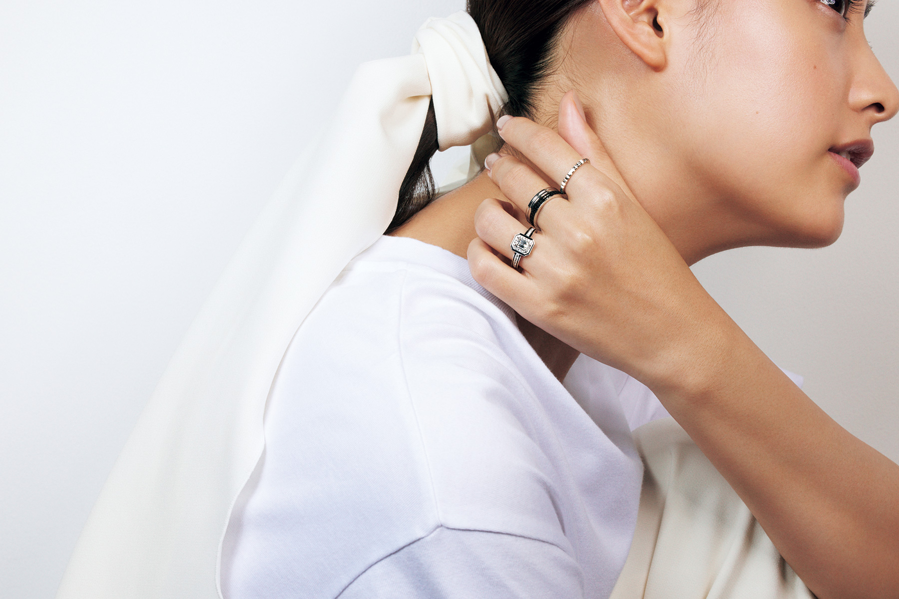 新しいふたりの人生を象徴するウェディングリング、特別なときだけでなく普段からずっといっしょでいたい —— いつもの服に馴染ませるには、私らしいリングと重ねるのがいい。女優・山本美月がナビゲートします。