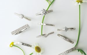 アームや石座をすっきりさせたデザインは、手元にリズムが生まれるラインワークやV字など、表情豊かなマリッジリングがお似合いです。