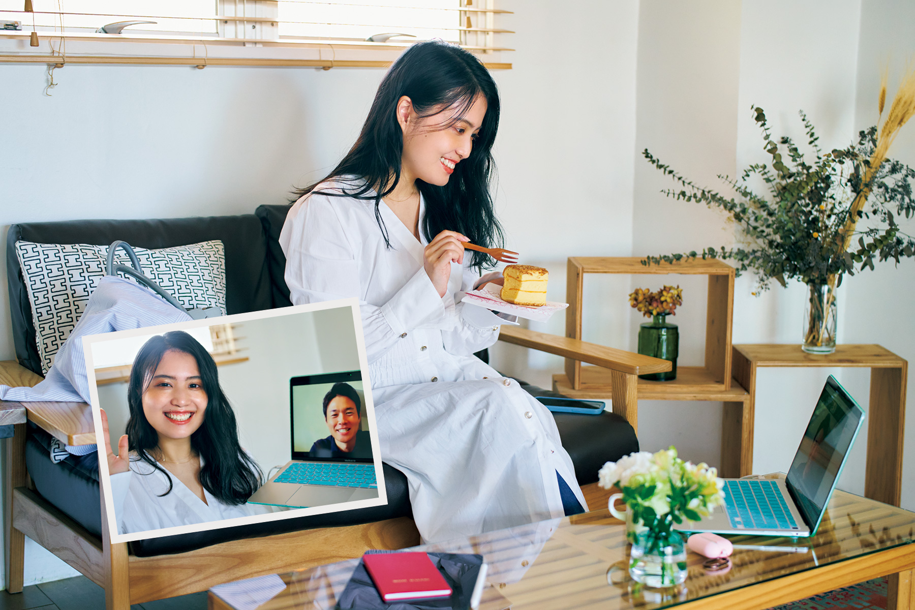 でもずっと遠距離状態だったし、夫は商社勤務ということもあって、いつまた海外赴任があるかわかりません。さらに私もあと数年は自分の事業に集中したい…そんなタイミングで、一緒に暮らせない状況でも、彼しかいないと入籍を決めました。遠距離別居婚の秘訣は、相手に干渉しすぎず、こまめに連絡を取ること。些細な話から仕事まで全部話します。一回だけ私が新店舗の準備で2日間音信不通になって…。そのときは彼が「スタンプ1個でいいから送って」と心配して。自分一人だけの人生じゃないと反省しました。余裕があるときはZoom飲み。近況報告など話は尽きず、2人とも仕事好きなので仕事の相談もします。異業種ならではの考え方も知れるし、価値観の押し付けがなく対等に話ができて、いい刺激になっています。