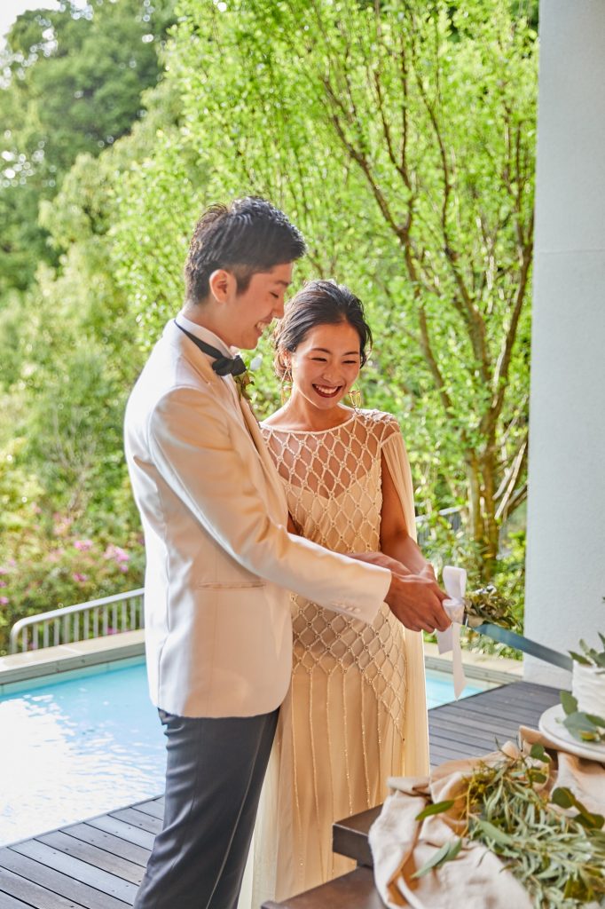 新婚連載2組目・第2回は、元々小学校の同級生だった松田さん夫妻の結婚式の様子に迫ります。「挙式に来てくださった方々とお話ができる時間を取りたい!」と言う想いを最優先に、緑と水の調和が美しいモダンなリゾートウエディングを実現。丹沢山系を望む丘上に建つゲストハウスでのカジュアルウェディングをレポートします。
