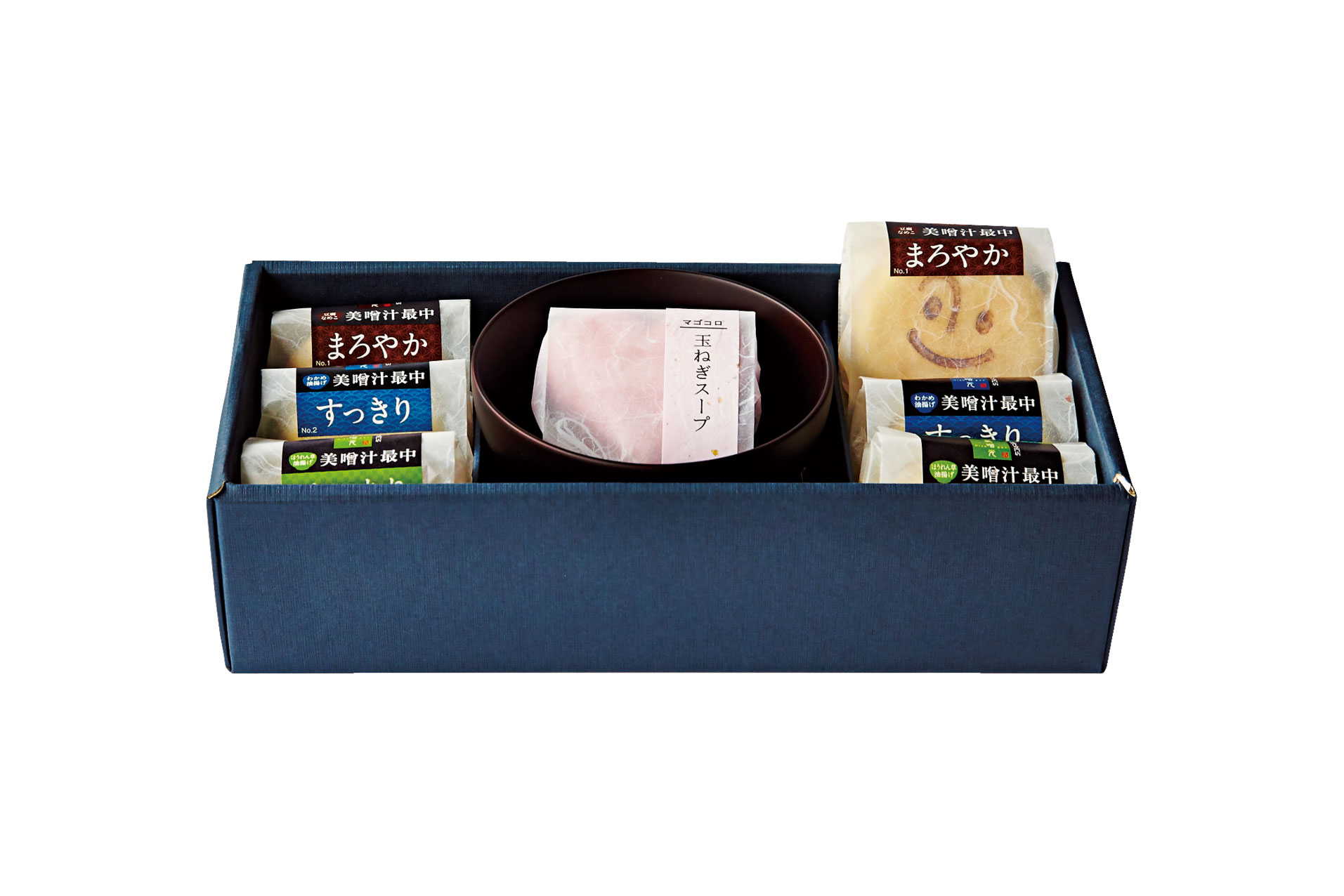 スマイル顔の最中に包まれた、インスタントみそ汁セットです。深夜に淹れると、ほっと一息ついた気持ちになれます。どこか懐かしい味がするお味噌はもちろん、ふわふわの最中からも優しさを感じます。