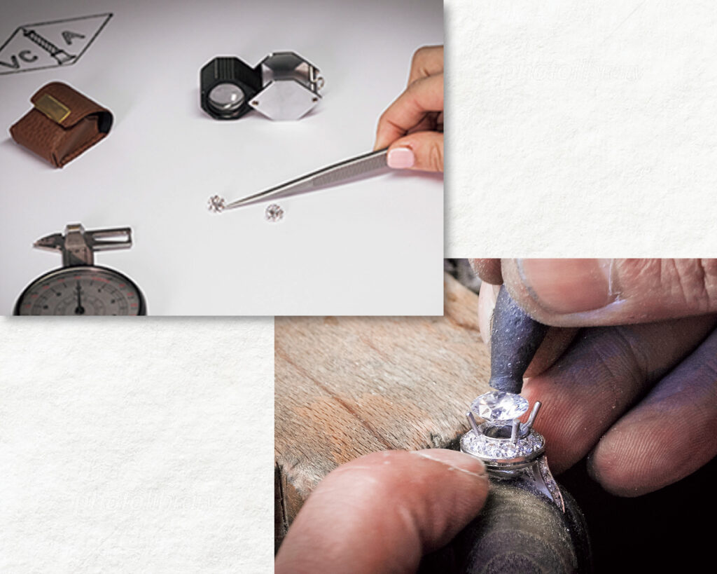 ソリティアに使用されるそれぞれの石は、メゾンが誇る宝石鑑定士が選抜。