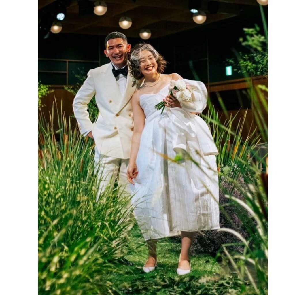 「セシリー・バンセンのドレスワンピとジャケットをデンマークからオーダーしました。入場時はワンピースのみ、再入場時にはジャケットを羽織ってお色直し風に。安くはありませんが式後も私服として愛用できるので、長く使える点ではドレスをレンタルするよりお得だと思います」橘 彩さん(30歳・スタイリスト/PR)