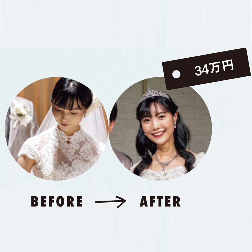 「韓国の試着はヘアセット付き。ドレスに合わせて小物もチェンジしてくれます。ティアラとヴェールはドレスを買うとついてくるので、体験含めて日本よりもお得!」中村真優さん(28歳・広告関係)