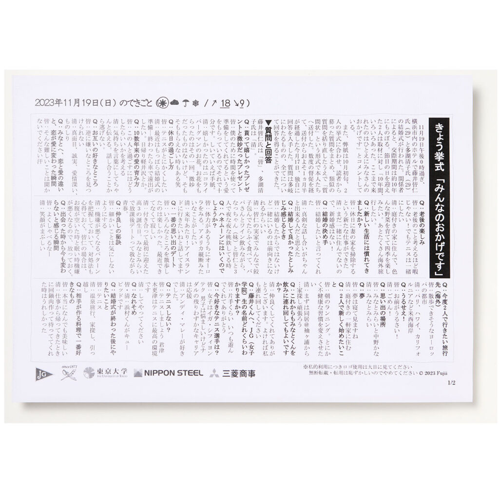 「日本随一の編集力と呼び声の高い『Tomato Red Motion』に依頼。担当者とは事前に綿密な打合せがあり、2人の人柄や式の雰囲気を反映してくれます。BGMにのせて映像が流れるだけでなく当日の声を生かした編集をしてくれるので、その日だけ、自分たちだけのムービーになりました」N・Tさん(32歳・法律関係)