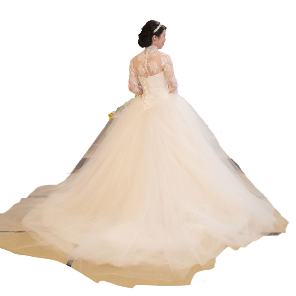 「挙式→披露宴でレースを付け替えて印象をチェンジ。お色直しの時間がもったいなく、気に入ったドレスを長く着たいと伝えたところ、ブライダルショップの方に提案してもらいました」佐野佳織さん(30歳・エンタメ)