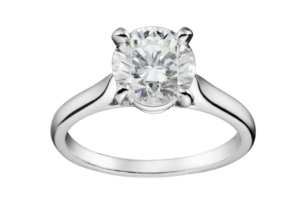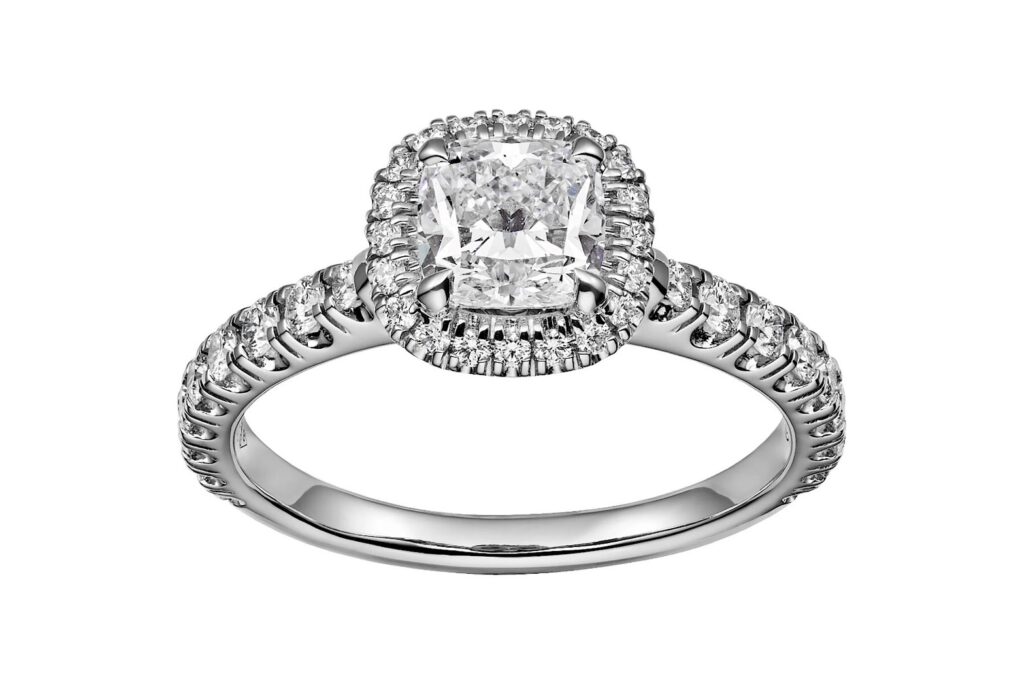 アームとセンターダイヤモンドの周りにもぎっしりとダイヤモンドがセッティングされたラグジュアリーなエンゲージメントリング。1本で圧倒的な存在感と輝きを放ちます。ソリテールリング「カルティエ デスティネ」(プラチナ×ダイヤモンド)0.5ct~ ¥1,171,500~