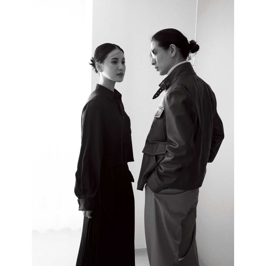 【衣装クレジット】【KAREN】トップス¥37,400スカート¥39,600(ハイク)ブーツ/スタイリスト私物【YU】ジャケット¥933,900タートルニット¥146,300パンツ¥146,300(すべてトッズ)ブーツ/スタイリスト私物メガネ、ジュエリー/すべて本人私物