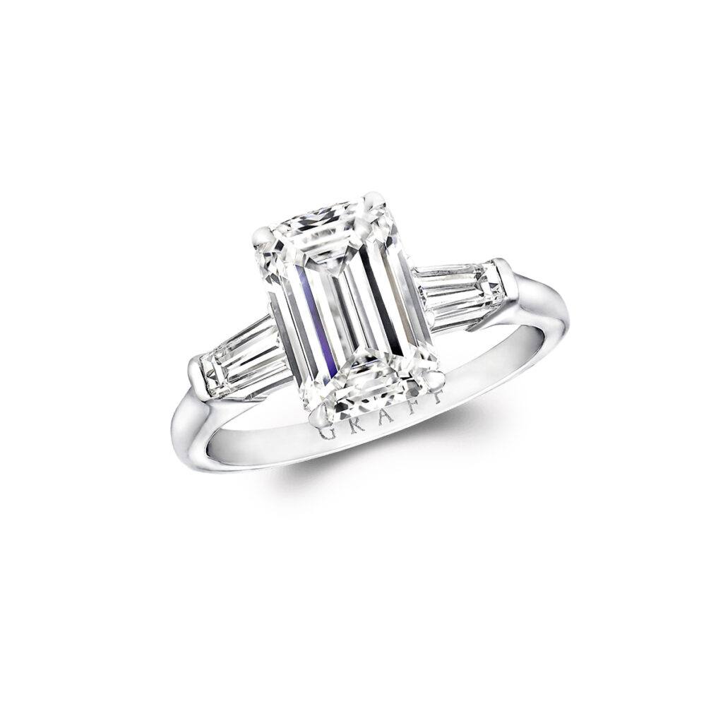 21世紀のキング オブ ダイヤモンドと名高い「GRAFF」が贈るタイムレスなデザイン。王道こそ至高と思わせるシンプルなウェディングバンドとの心踊る組み合わせ。リング「プロミス」〈PT×DIA センター2.04ct/左手薬指上〉¥11,290,000リング「クラシック グラフ」〈WG×DIA/左手薬指下〉¥734,200イヤリング「ティルダズ ボウ」〈WG×DIA〉¥3,843,000時計「ティルダズ ボウ」〈WG×DIA〉¥10,310,000(すべてグラフ/グラフダイヤモンズジャパン)