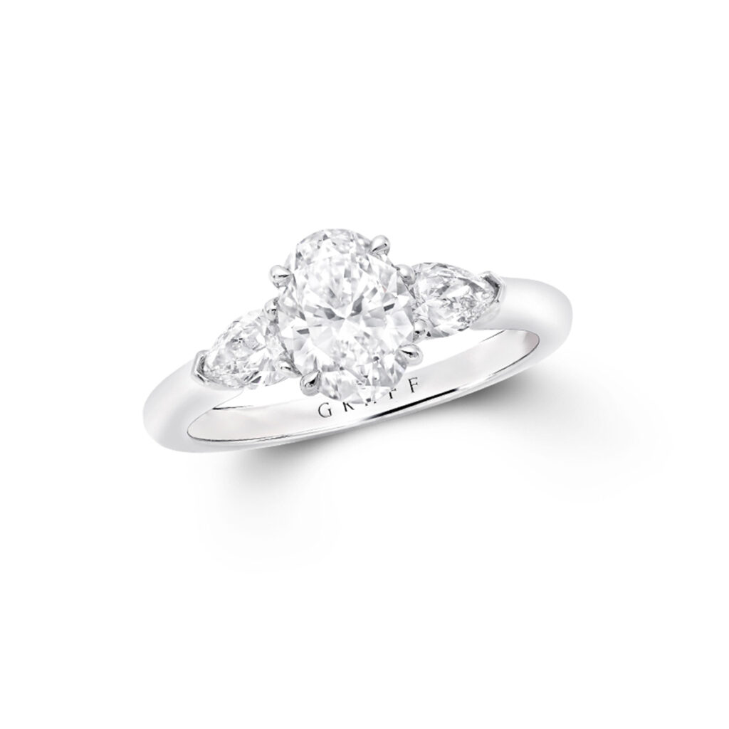 ペアシェイプのセンターストーンと、サイドにあしらわれたダイヤモンドの眩い煌めき。羨望のセンターダイヤモンドに完璧にマッチするよう、サイドストーンもまた多様なシェイプから厳選されて。