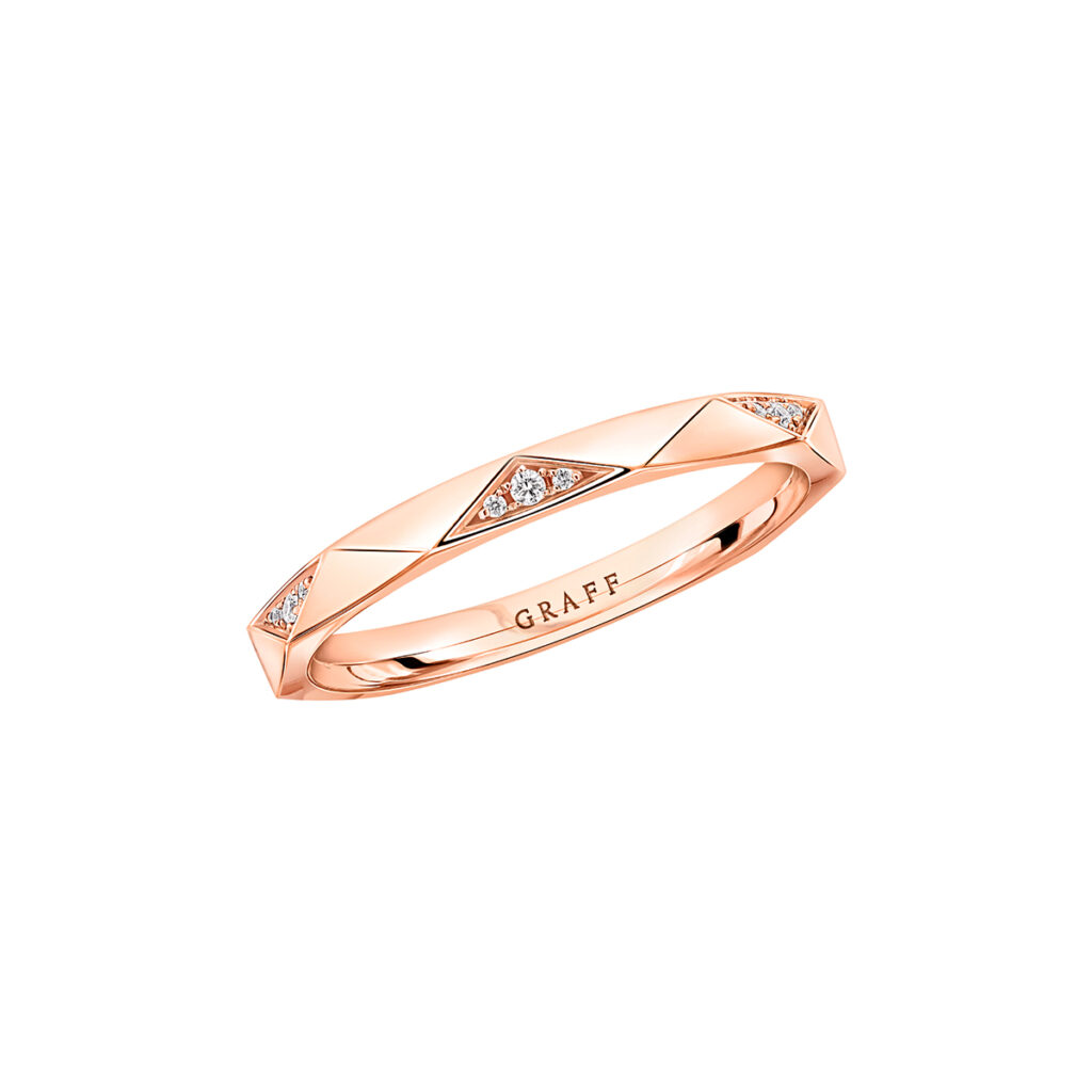ダイヤモンドの立体的なファセットを表現しているデザインだから、重ねづけしてもトゥーマッチにならず洗練された印象に。すべて「ローレンス グラフ シグネチャー」リング〈WG×DIA/右手人差し指〉¥500,000リング〈RG×DIA/右手薬指〉¥414,000リング〈WG×DIA/右手薬指〉¥617,000リング〈YG×WG×DIA/左手人差し指〉¥891,000リング〈WG×DIA センター1.01ct/左手薬指〉¥3,160,000バングル〈YG×DIA〉¥2,375,000バングル〈RG×DIA〉¥1,617,000バングル〈WG〉¥1,359,000ピアス〈WG×DIA〉¥1,922,000(すべてグラフ/グラフダイヤモンズジャパン)