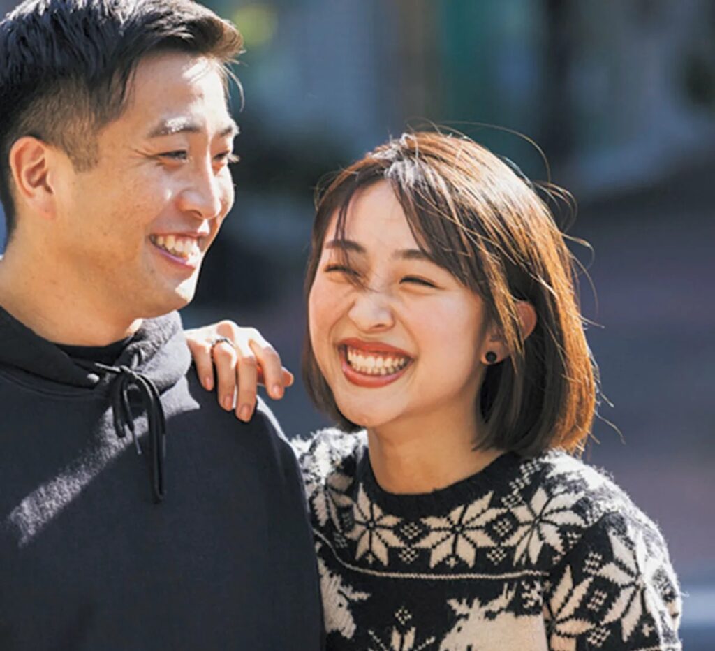 共通の知人を通じて出会い、交際1年の記念日にプロポーズを受け、婚約。2022年12月に入籍。趣味はラグビー観戦やゴルフ、ドライブなどアクティブなものが多く、週末にはそれぞれの実家を訪れることも。最近は家で映画を観たり、おうち時間も大切にしているそう。