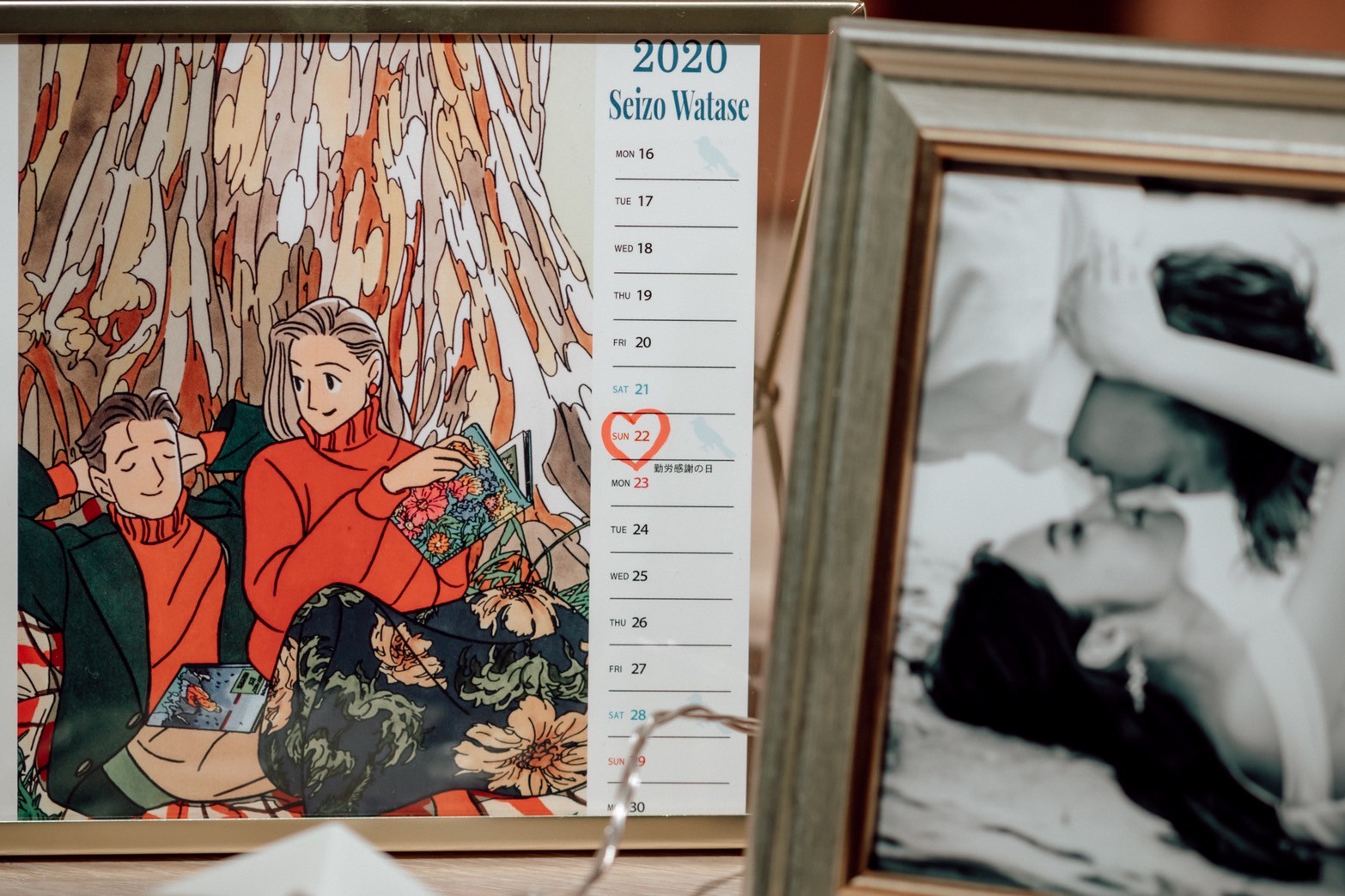 実は、ふたりはカメラマンやヘアメークが練習モデルを募集していた時期に積極的に応募しており、何度も前撮りの機会に恵まれたそう。家族婚というスタイルに合わせて、あえてプロフィールブックは作らず、写真を通してこれまでの歩みを伝える形にしました。