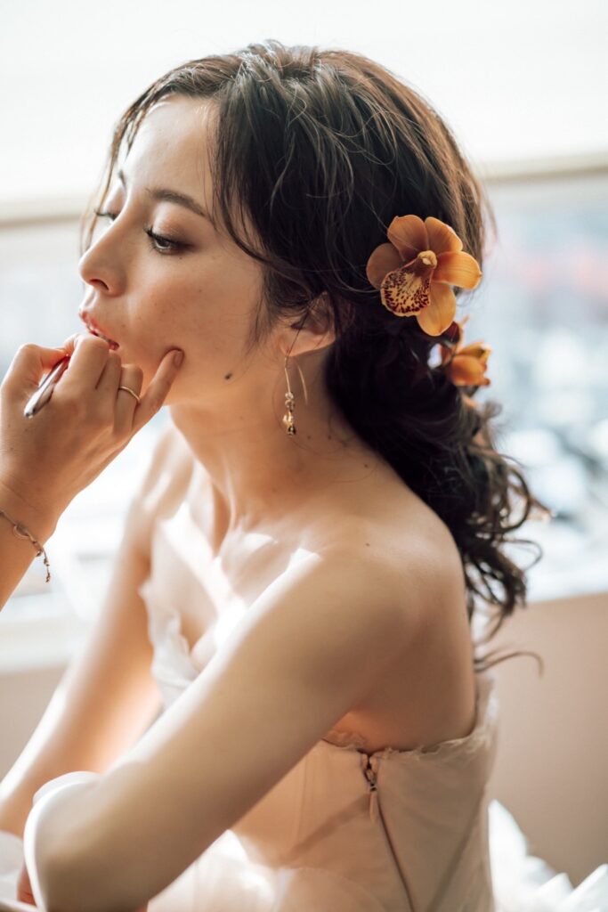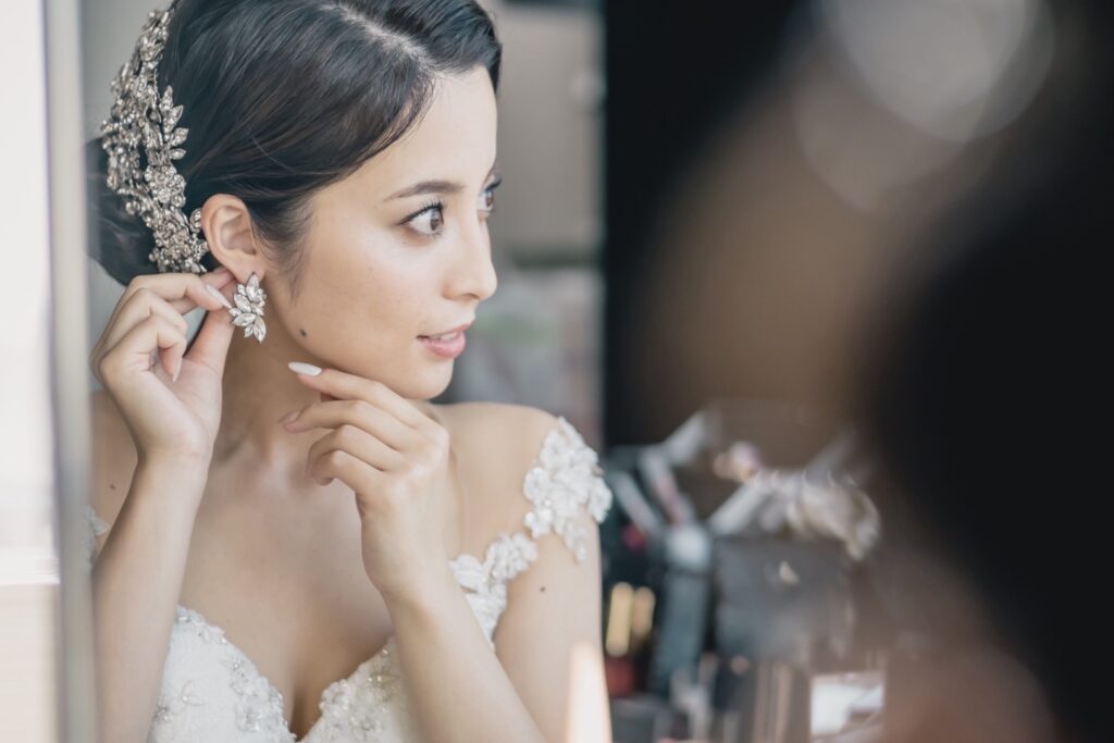 「装飾は決めていましたが、イヤリングとのバランスがなかなか決まらなくて。最終的に“当日の気分で決めよう”となり、ヘアメークさんに全幅の信頼を置いてお願いしました。やりたくないスタイルと好みだけは事前に伝えていたので、すごく満足いく仕上がりになりました」(七海さん)