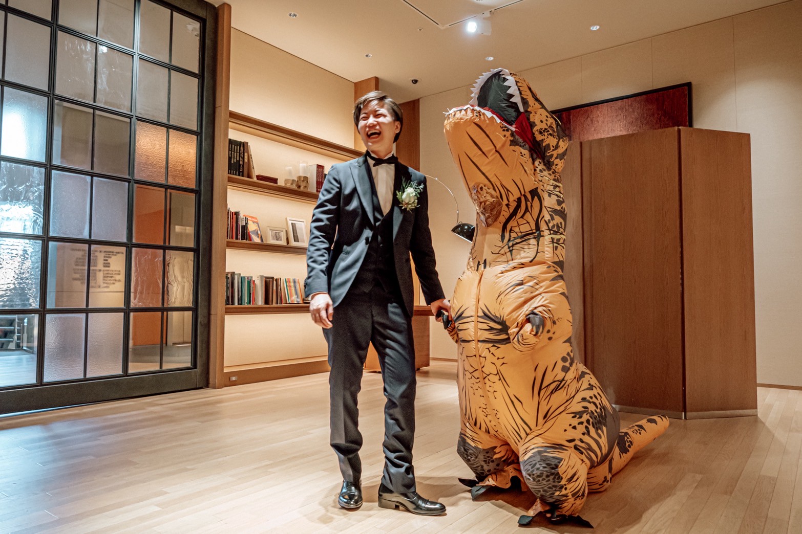 「ちゃんとおもてなしをするのはもちろん、ふたりの思い出も作りたかったんです。タキシードのプレゼントと恐竜の登場、どちらもサプライズイベントとして大成功でした」(七海さん)