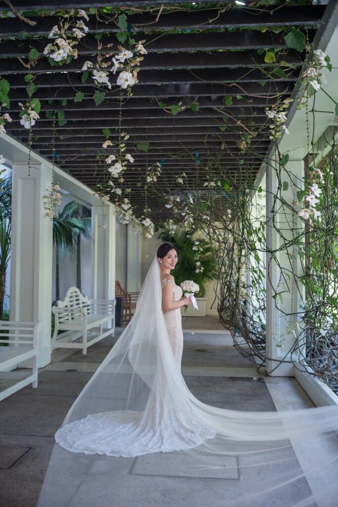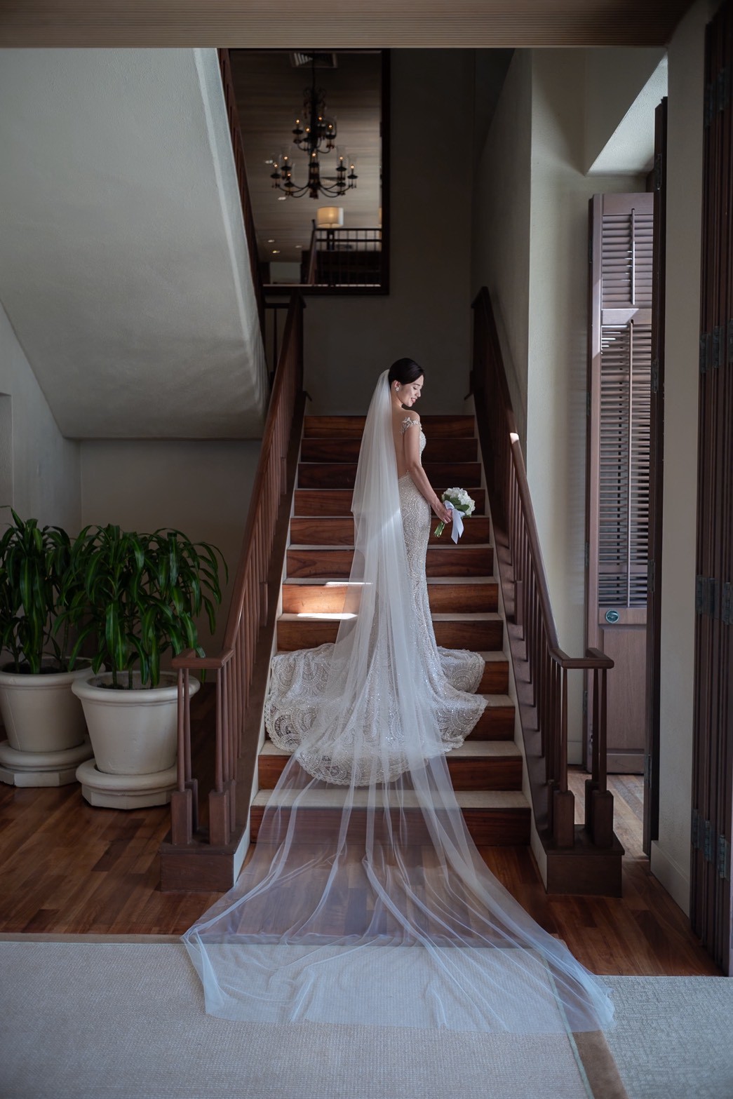 「昔、インスタで見たガリア・ラハヴのドレスがずっと記憶に残っていて。ハワイで結婚式をやると決まった時点で、海にも合うし、イメージはなんとなくできていました」(愛香さん)