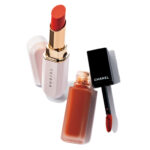「モードで落ち着いたシャネルをベースに、トーンのツヤとフレッシュなオレンジ感をプラスしました」[右]ルージュ アリュール リクィッド ヴェルヴェット 212 ¥6,270(シャネル)[左]トーン カラー ブロッサム01¥3,300※セット価格(to/one)