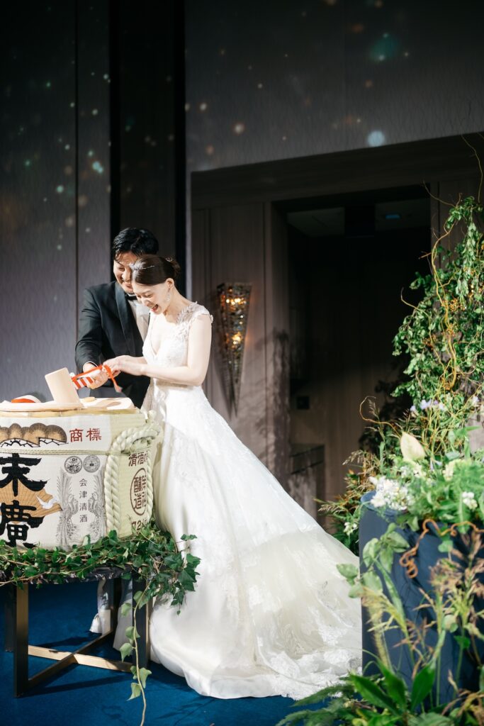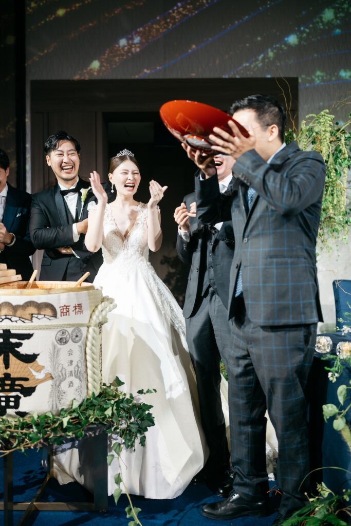 最も象徴的だったのはウェディングケーキをやめ、鏡開きを採用したこと。
