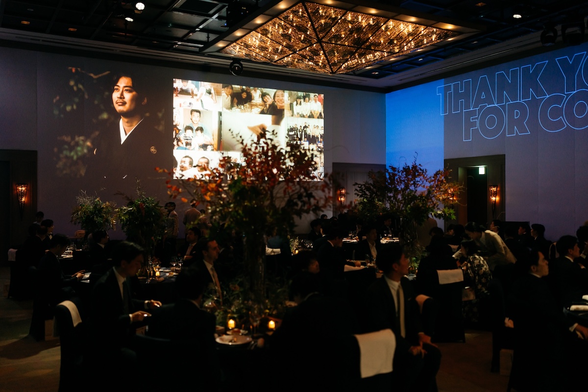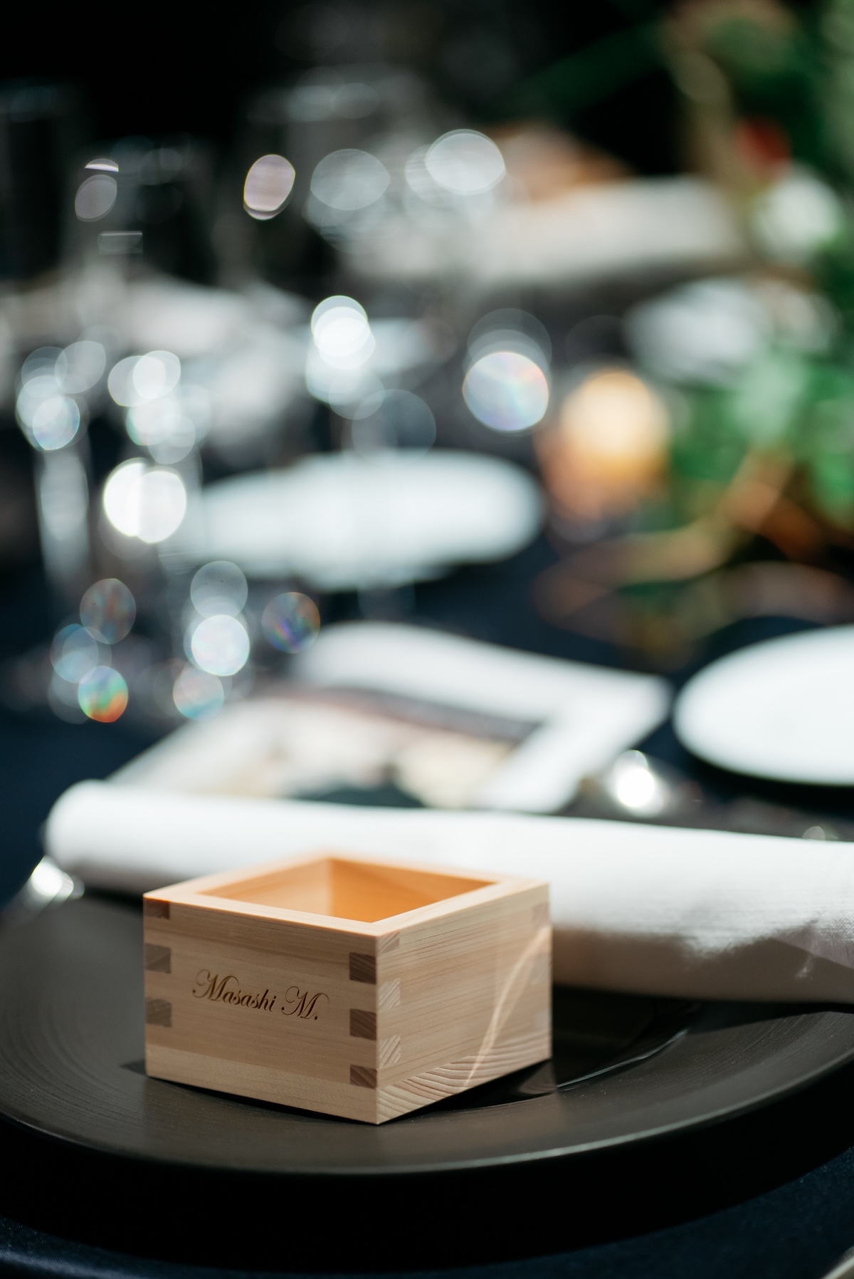 さらに、席札を枡にし、そのまま持ち帰れる仕様に。中座の時間も、ゲストは枡でお酒を楽しんだり、友達同士で乾杯したりと、会場に自然な交流が生まれました。