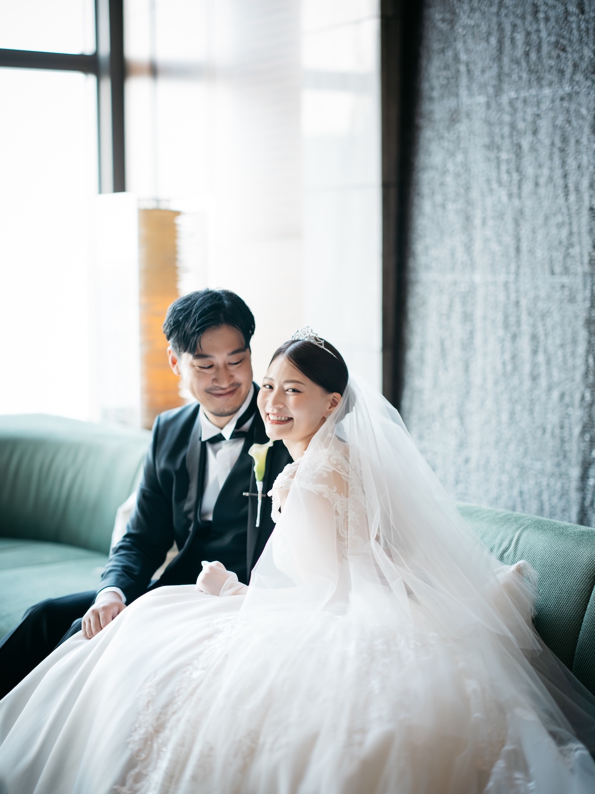 東京都在住。2024年3月、温泉旅行中にサプライズでプロポーズを受け、婚約。同年6月に入籍。今年10月18日にマンダリンオリエンタル東京で挙式。多忙な日々のなかでも、美味しいごはんとお酒を楽しむ“ふたり時間”を大切にしているそう。