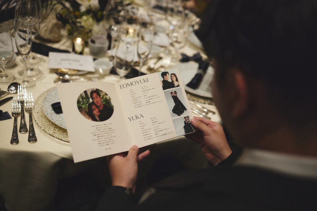 「プロフィールブックはInstagramで見つけたデザイナーさんに外注しました。ゲストの多くが大学時代からの友人か親族で、私たちのことをよく知っているメンバーだったので、馴れ初めを細かく説明するような構成はあえて選ばなかったですね」(由佳さん)