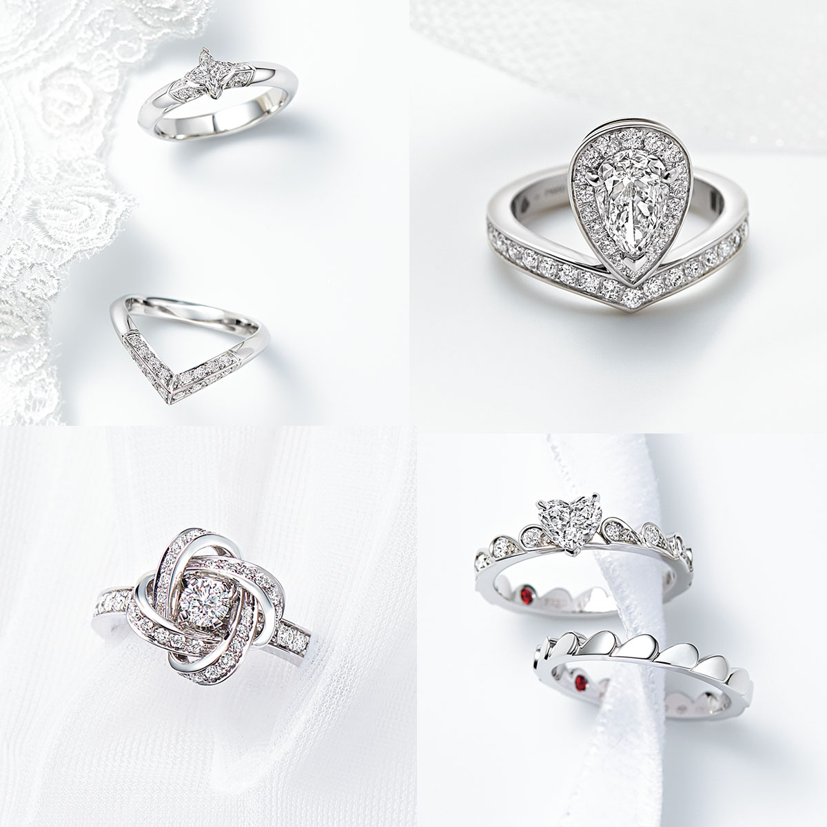 ※文中の素材表記は、D=ダイヤモンド、Pt=プラチナ、WG=ホワイトゴールド、RG=ローズゴールド、PG=ピンクゴールド、Ct=カラットです。