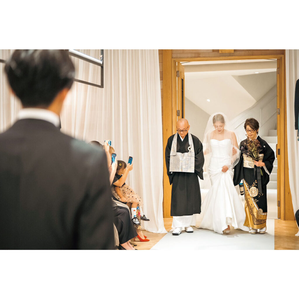 「父親がエスコートし、新郎にバトンタッチする」のが定番と思われがちですが、実は決まりはありません。様々な背景から、固定観念を捨て、それぞれの解釈で儀式の始まりに意味を込める新郎新婦が増えています。