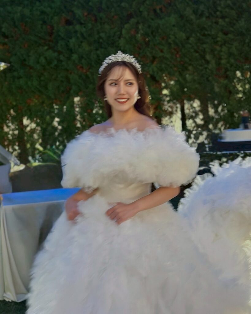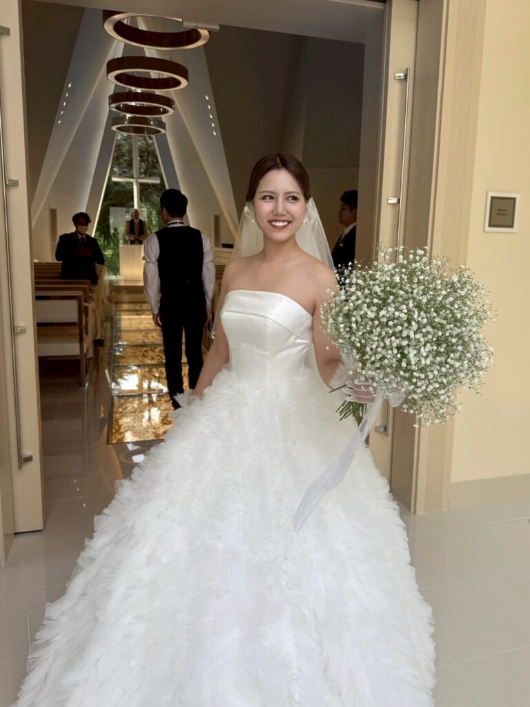 その中から、挙式と披露宴で選んだのが、チュール素材の白ドレス。パリでの前撮りで着用した一着とは別に、本番で着るためのドレスとして選び、会場へ持ち込みました。