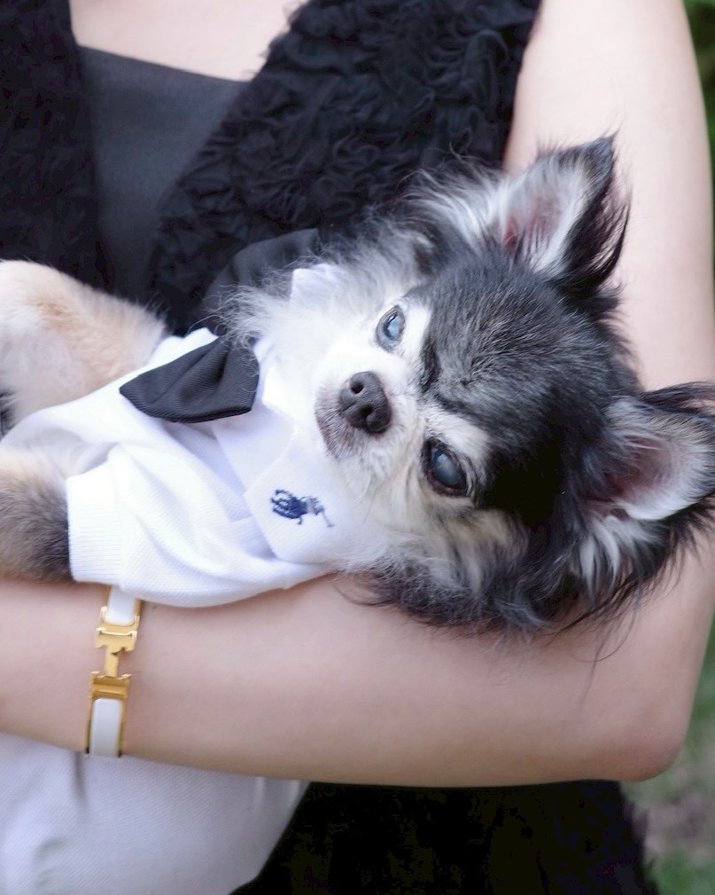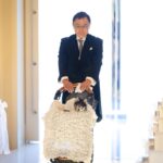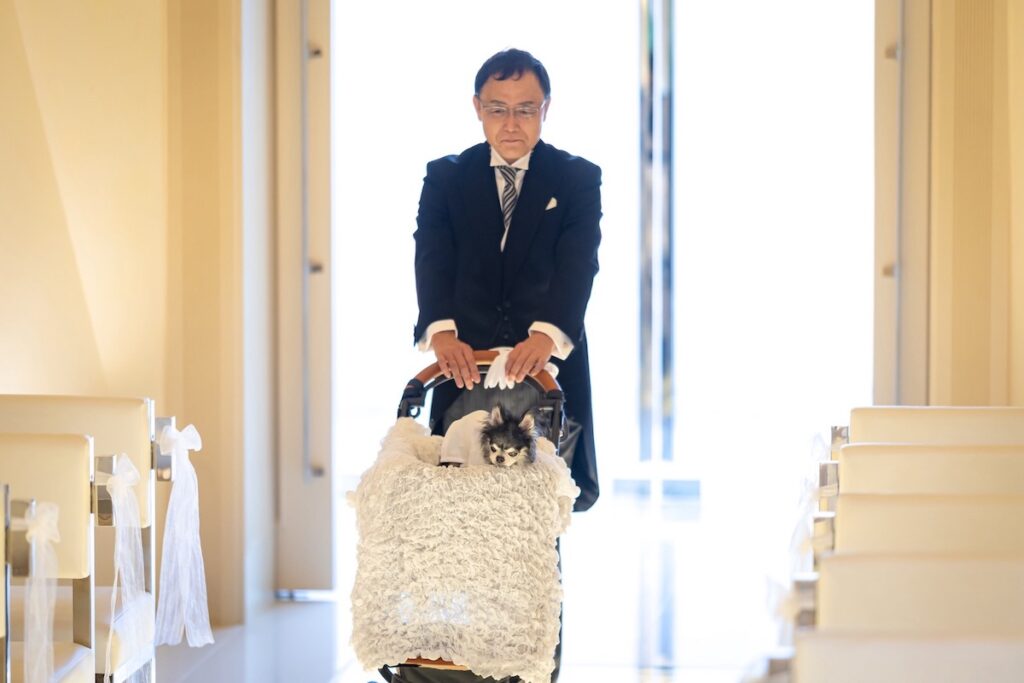 ラオウくんはリングドッグとして挙式にも参加。ラルフ ローレンのポロシャツに蝶ネクタイを合わせ、結婚証明書には肉球でサインをするという大役を果たしました。その3ヶ月後に19年の生涯を終えたラオウくん。結婚式の日に一緒に過ごした時間は、家族にとってかけがえのない思い出になりました。