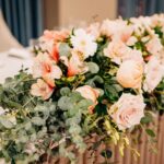 ピンク×グリーンで統一した、やわらかな披露宴会場づくり