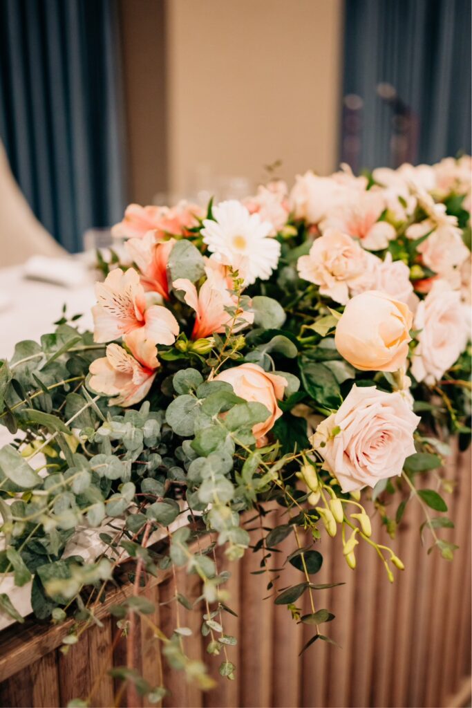 「かっこいいというよりも、少しほんわかした空間にしたくて。カラードレスがピンクだったので、装花もピンクをベースにしました」(心愛さん)