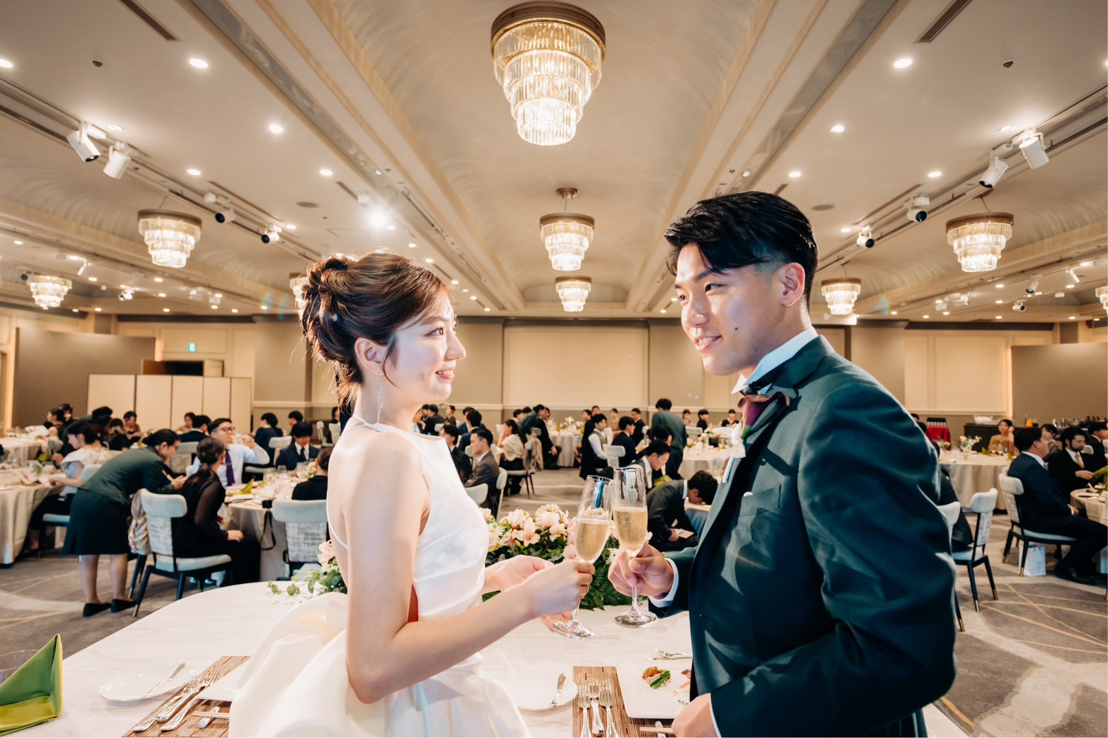 ふたりが式のコンセプトとして掲げたのは、”友人たちとワイワイ話せる場”。友人中心のゲスト構成にし、歓談の時間をたっぷり確保しました。