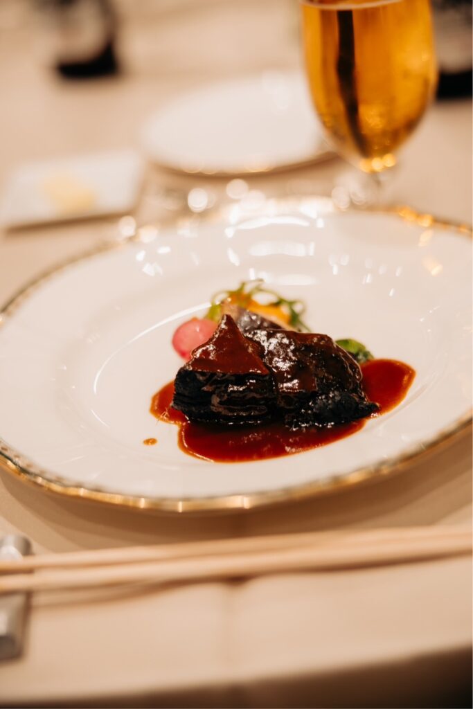 料理は複数のコースの中から、スタンダードなプランを選択。特別に華美な演出を加えるのではなく、ゲストが心地よく楽しめるバランスを大切にしたそうです。