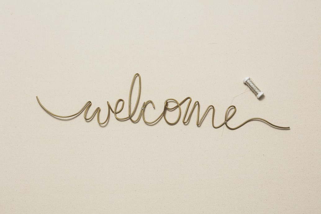 1.ゴールドの曲げやすいワイヤー(※)を用意し、好きなフォントのメッセージを紙に印刷する。