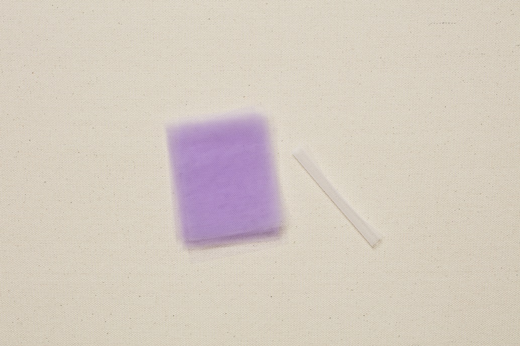 1.チュールを20枚ほど四角く切る。1枚を細長く畳み、残りを重ねる。