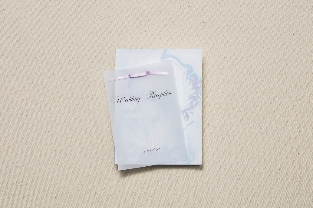 3.2の紙を静かに引き上げ、新聞紙などに挟んで反らないようして乾かし、2つ折りにして席次表の表紙にする。